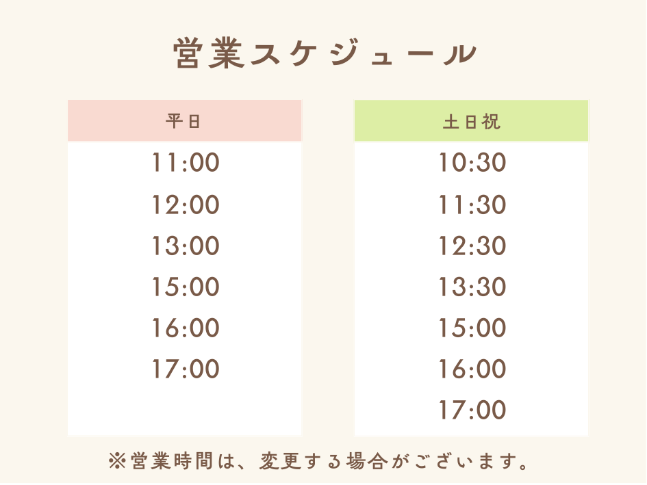※特に土日祝は混雑しやすく、お早目のご予約をオススメしております。