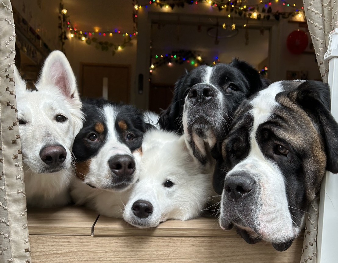 人が少ない平日は、運が良ければ大型犬6頭を独占できるチャンスがあります。
